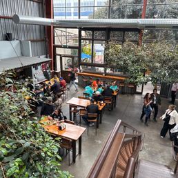 Really nice brewery (not the best location) but once you get inside you forget where you are! It's huge, with lots of big tables so it's a perfect place for friends hang out. You can sit inside or outside, and for the inside, there is a small upstairs space as well with a bar (although the bar was not open the night I was there). Overall a big selection of beers for all you beer lovers, and plenty of curated cocktail selection as well for the cocktail lovers As for food, I found the nachos and tacos very delicious You order at the bar / food counter and servers bring food to you I came for a large group event and we pre paid a tab and it was a very good experience for everyone